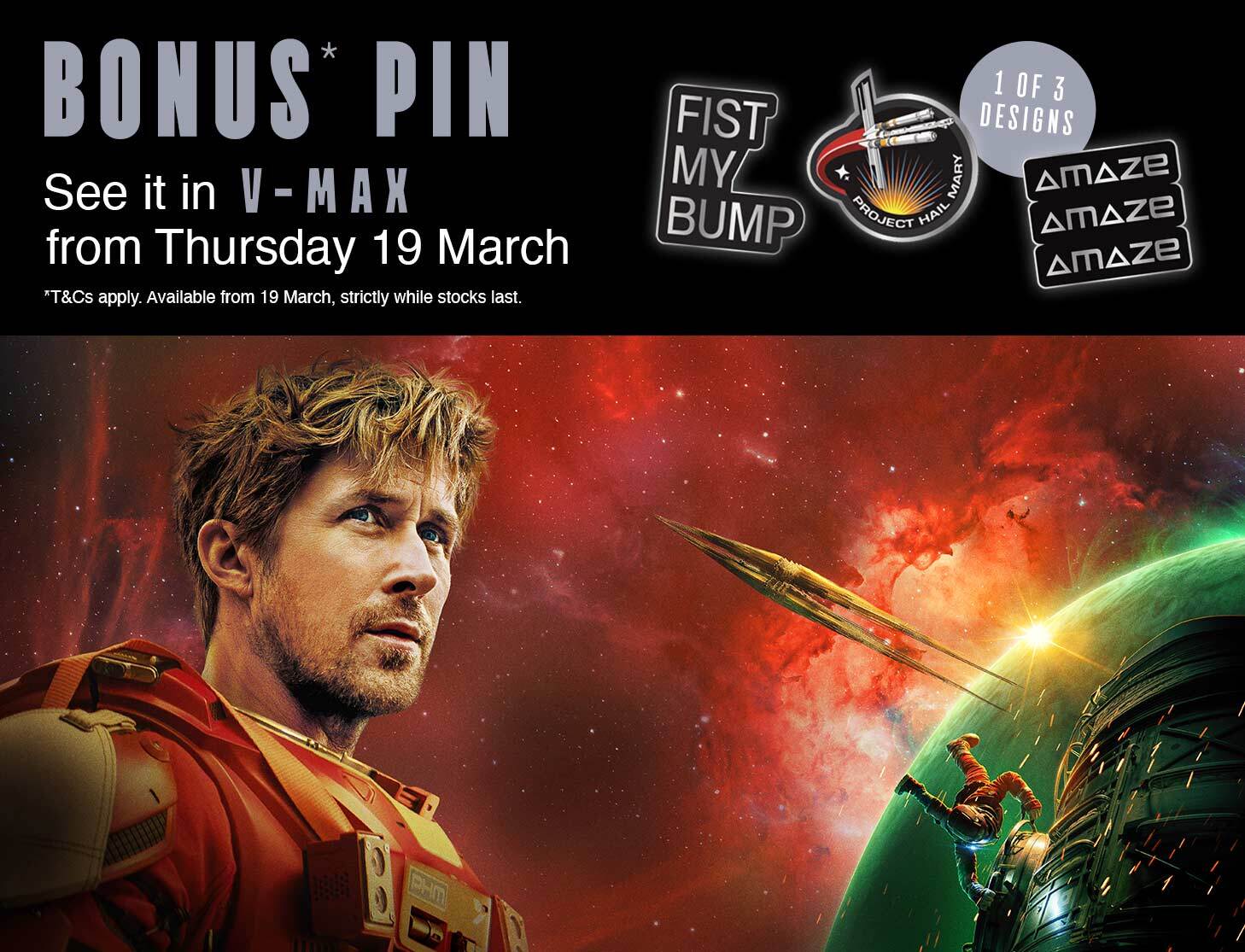 See Project Hail Mary in V-Max from Thursday 19 March and take home a bonus collector pin* - strictly while stocks last.